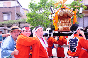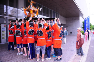 母校の地元である諏訪神社祭礼大森西三丁目連合町会神輿巡行に在校生が担ぎ手として参加しました。