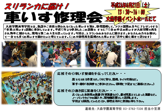 大森学園高等学校 空飛ぶ車いす修理会のお知らせ