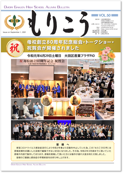 - 母校創立80周年をお祝い申し上げます。(大谷正勝)
