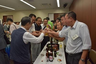 来賓、会員等総会出席者に、先生方(外部開催のため参加は15名となりました)にも加わっていただき午後5時過ぎに開式となりました。