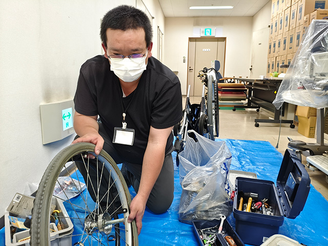 老人ホームの車椅子メンテナンス(清掃・点検・空気入れ)を中心に活動しております。