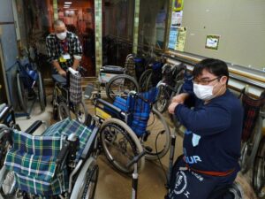 今回の活動は利用者の方と接触の無い場所でパンクの修理等の作業を行いました。
